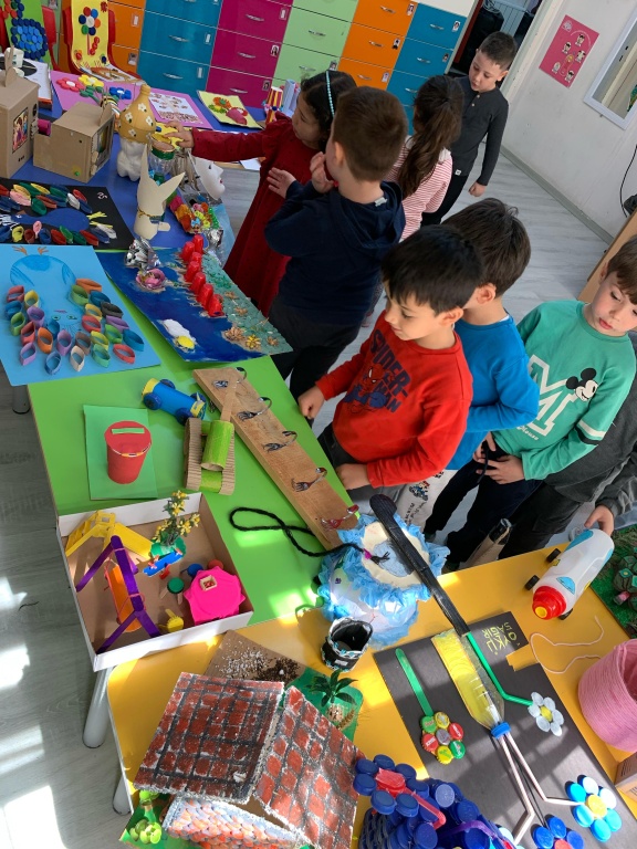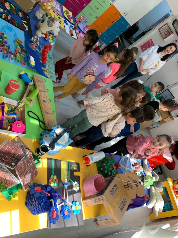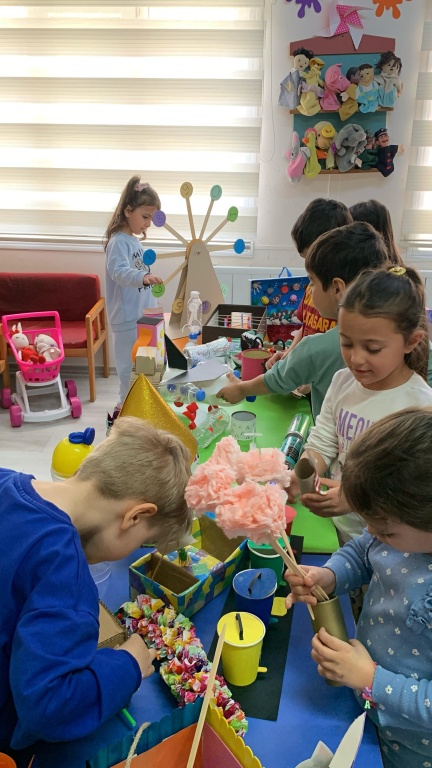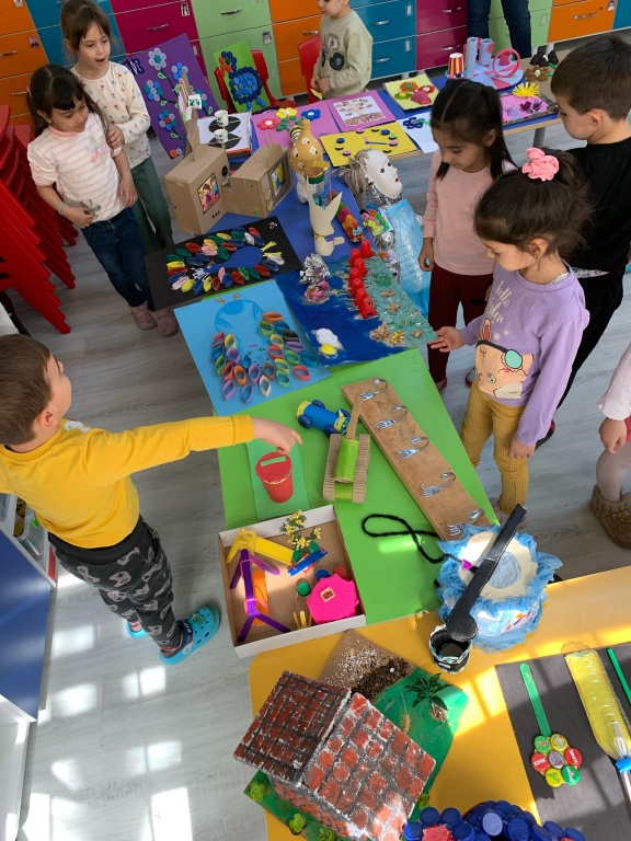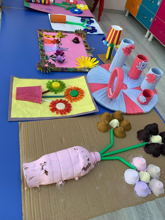 Planlama ve Hazırlık: Çalışmanın amaçları belirlenmiş, kullanılacak atık malzemeler ve teknikler konusunda öğretmenler tarafından bilgilendirme yapılmıştır. Ailelere çalışmanın amacı ve önemi hakkında bir bilgilendirme notu gönderilmiştir.